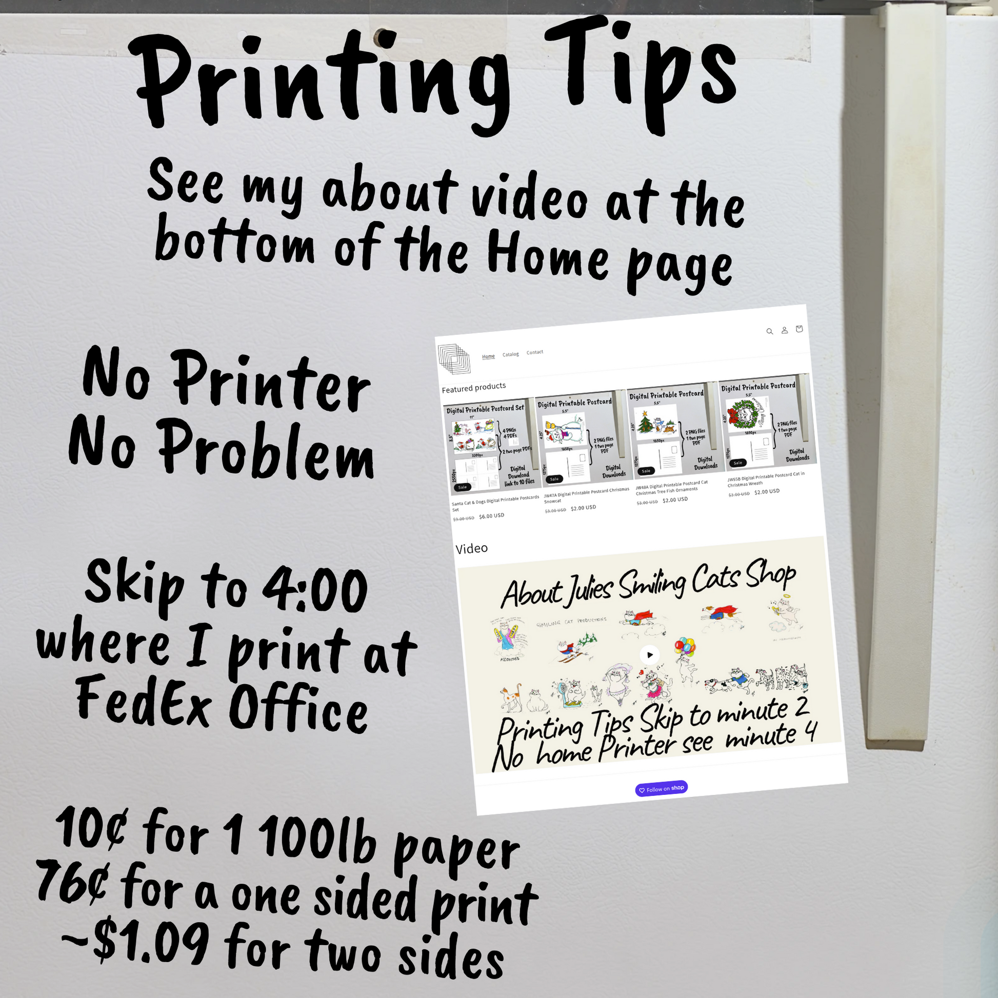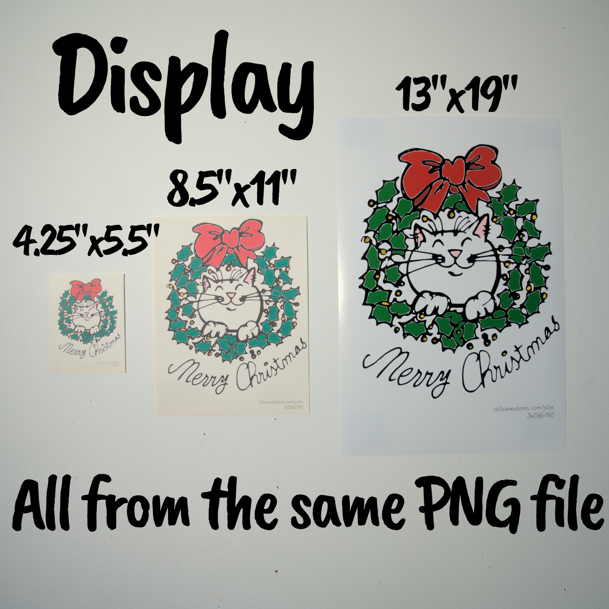 Note* when printing, use thick paper. I don't think the exact thickness matters. Just as long as it feels like a postcard. Card stock around 230gsm 85lb is just fine. If you don't have a printer. FedEx charges about $1 to print. Just bring your own thick paper. The PNG file has an aspect ratio of 1650x1275px, so at a 5.5in x 4.25in card, the resolution is 300px per inch. I've been able to print on as large as a 13in X 19in photo paper with the PNG file with no visible pixilation.