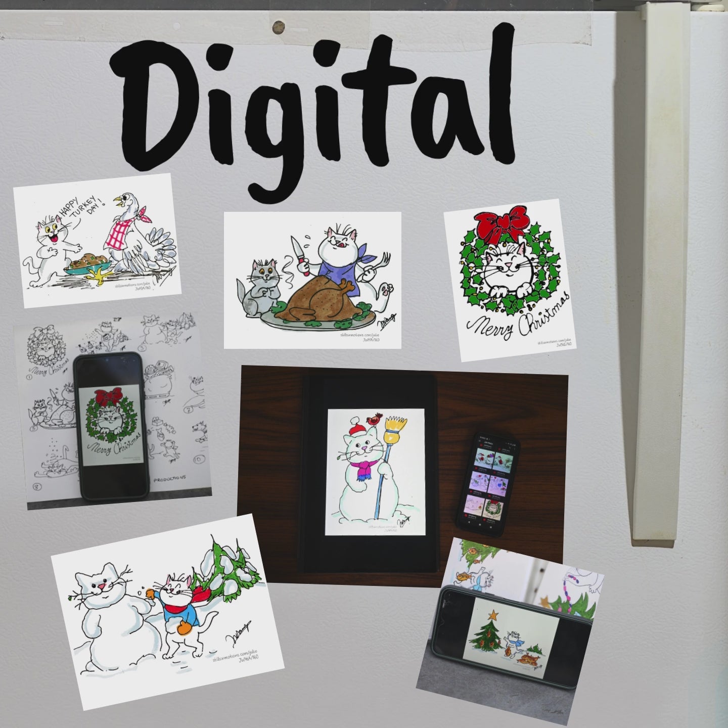 These are 4 out of 160 original hand drawn greeting cards created by my late great aunt in the 80’s. More about her on my website: https://www.stillsinmotions.com/julie