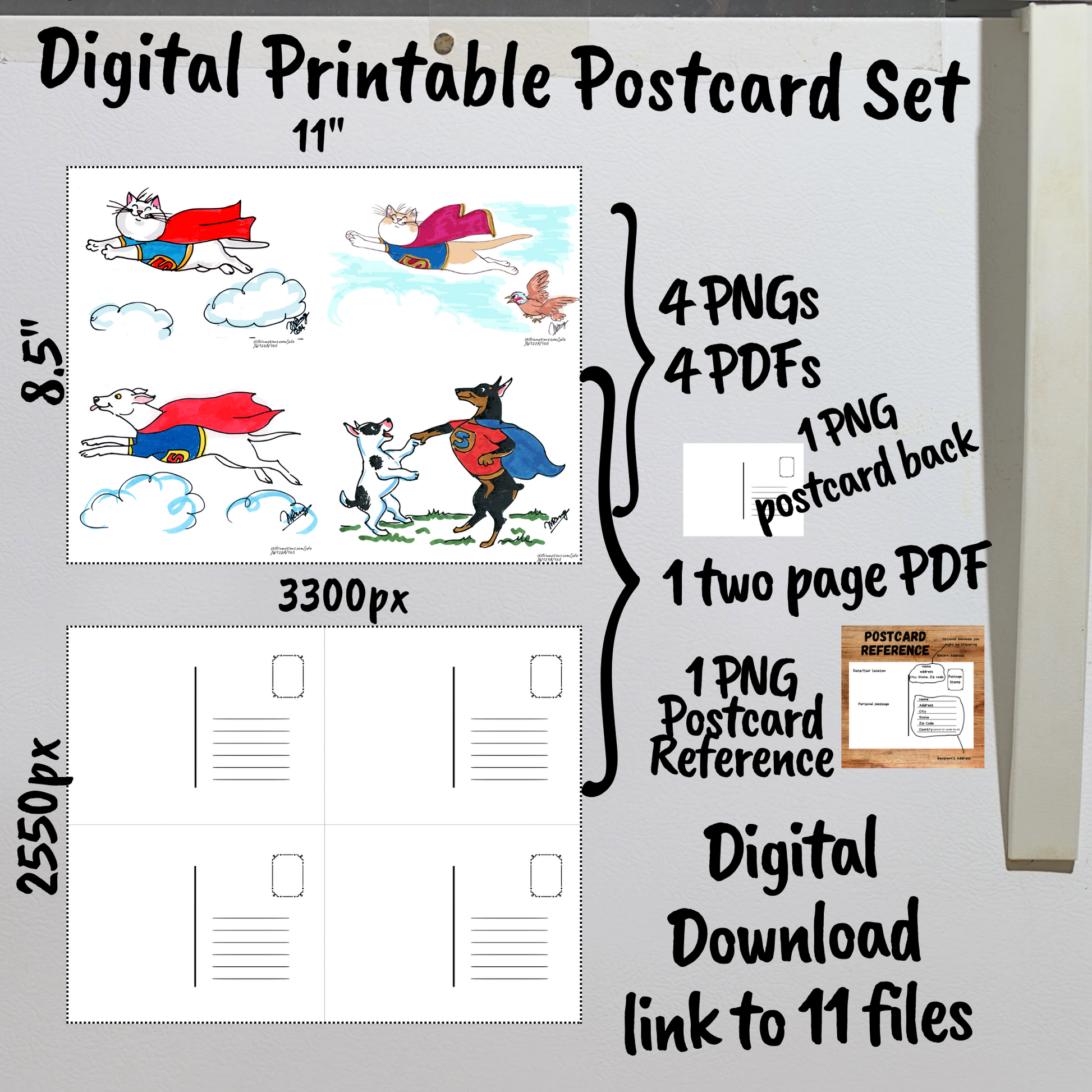 Super Cats & Dogs Digital Printable Postcards Set